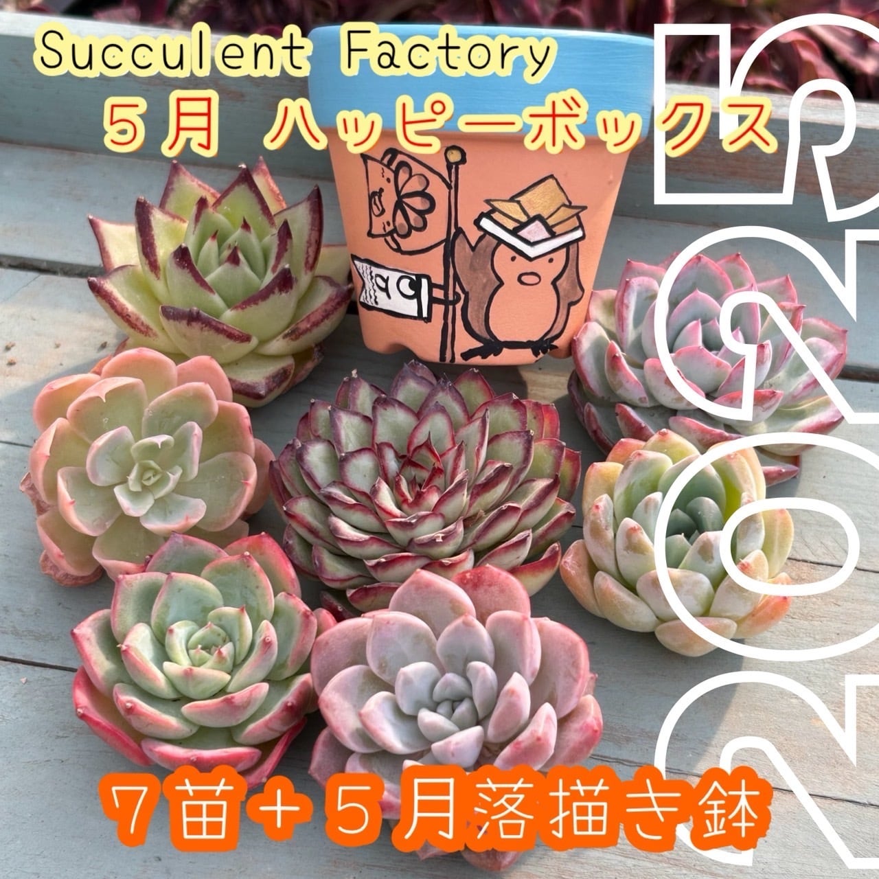 【5月ハピボ】 エケベリア7苗+落描き鉢のセット