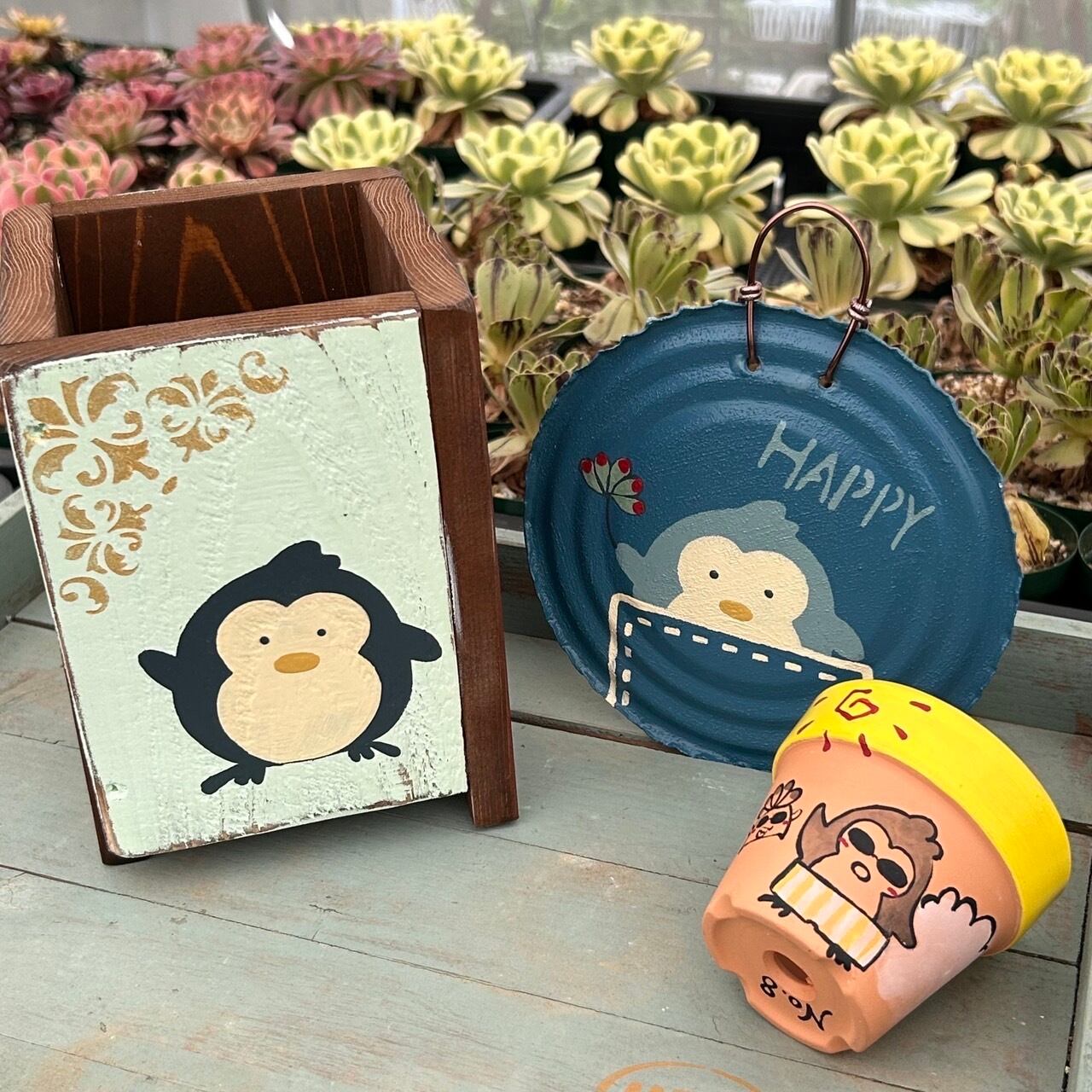 【8月ハピボ】 MOCHI CRAFTコラボ木鉢+ペン太プレート+落描き鉢 の3点セット
